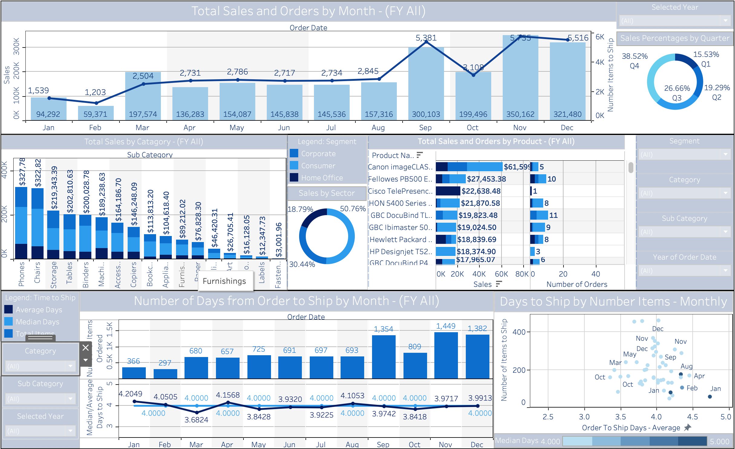 Visualization of online purchase data from a office equipment retailer. Dummy dataset provided by Rohit Sahoo on Kaggle.