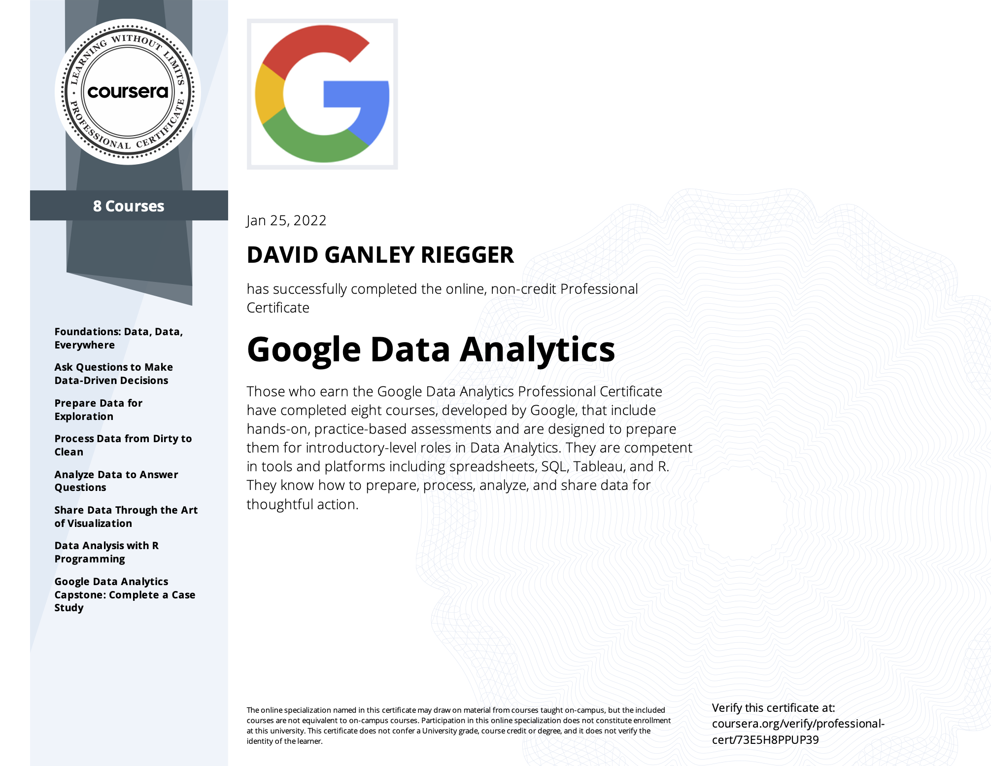 Google Data Analytics by Google on Coursera